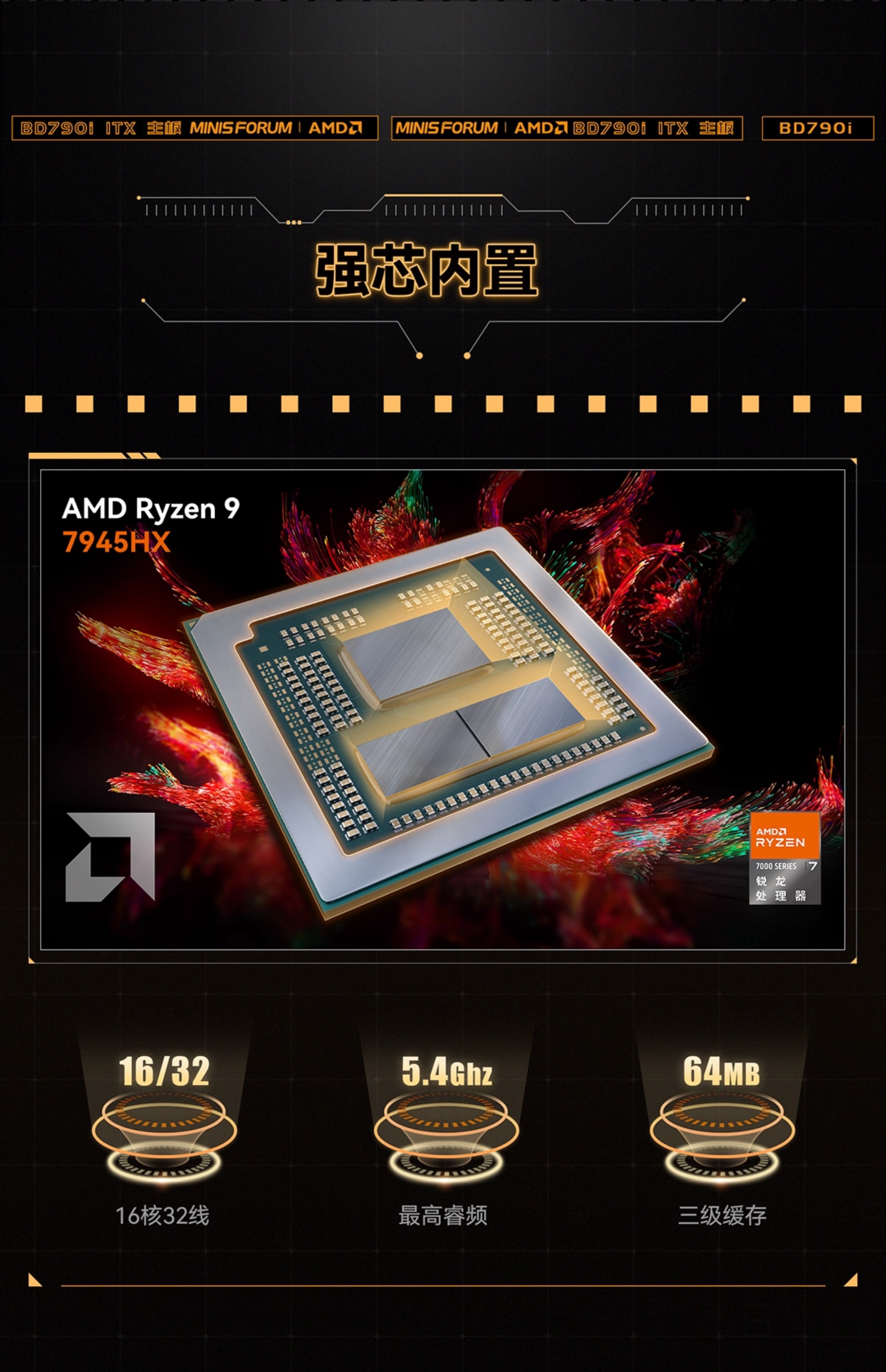 铭凡MINISFORUM BD790i/BD795i SE R9-7945HX itx电脑主板cpu套装