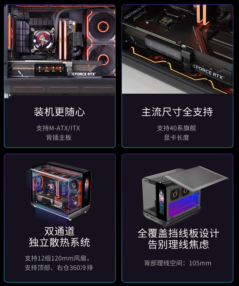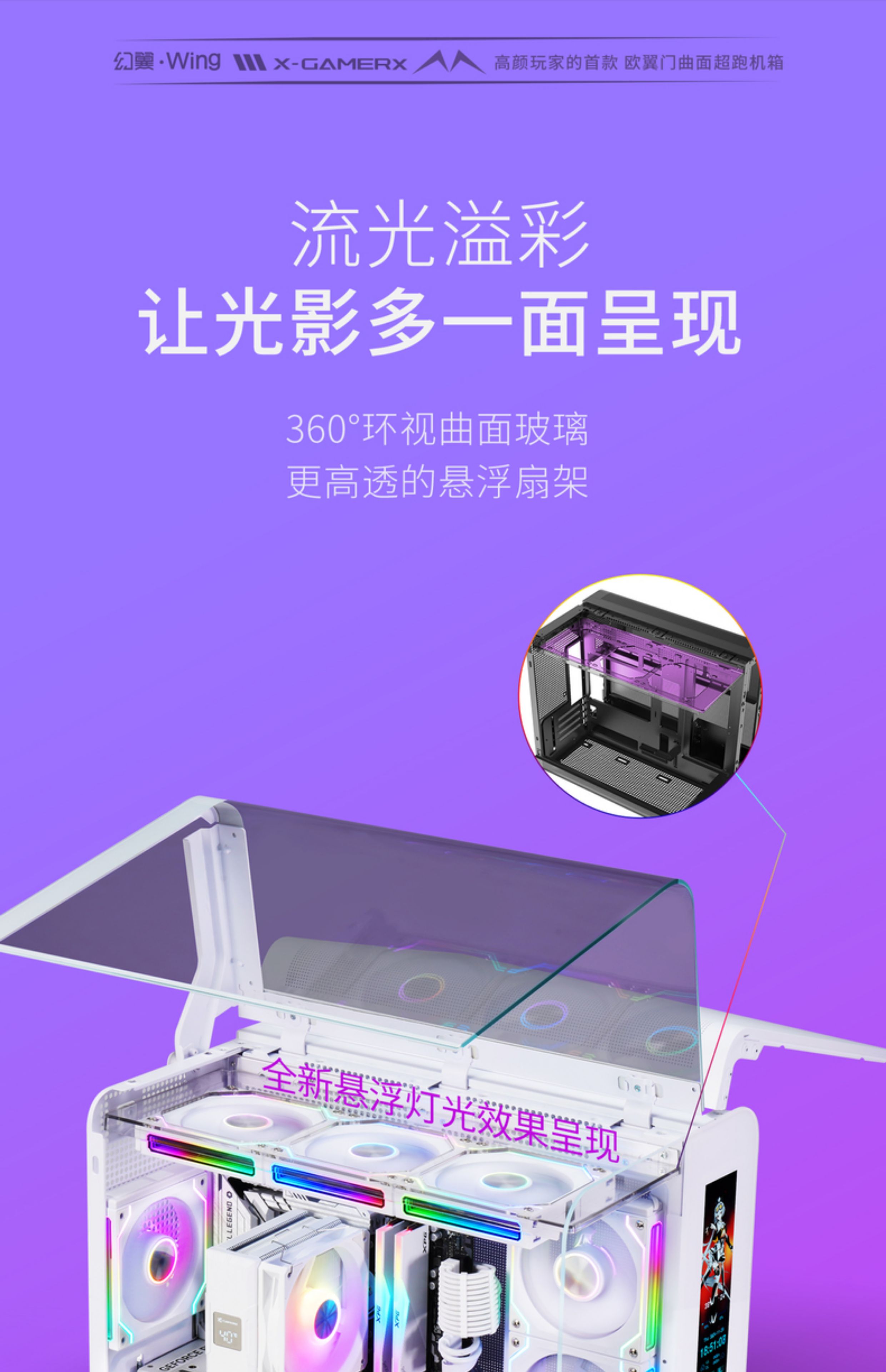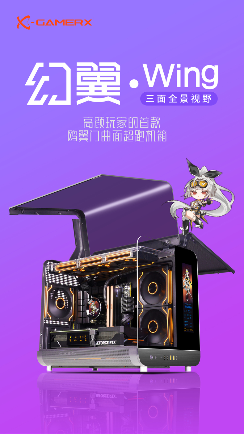 未知玩家幻翼海景房无立柱曲面玻璃MATX电脑台式屏显360水冷机箱