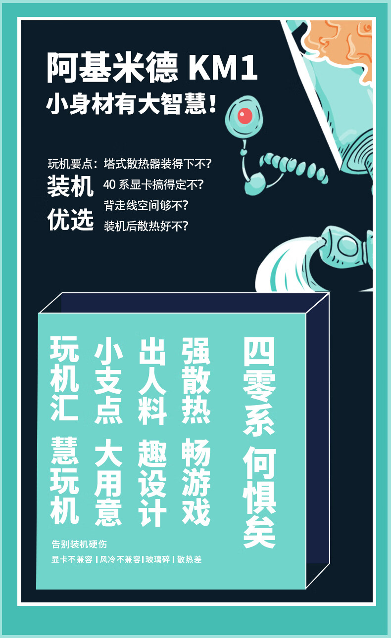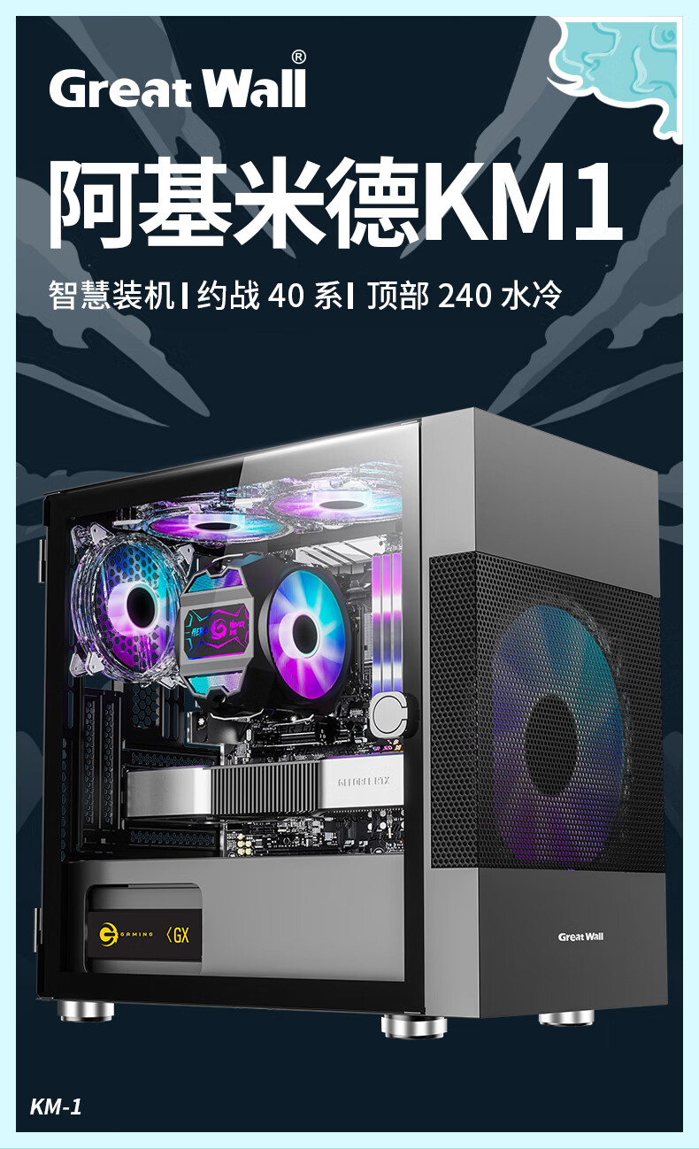 长城阿基米德KM1KM2KM5电脑机箱MATX主板240水冷宽体机箱支持40系