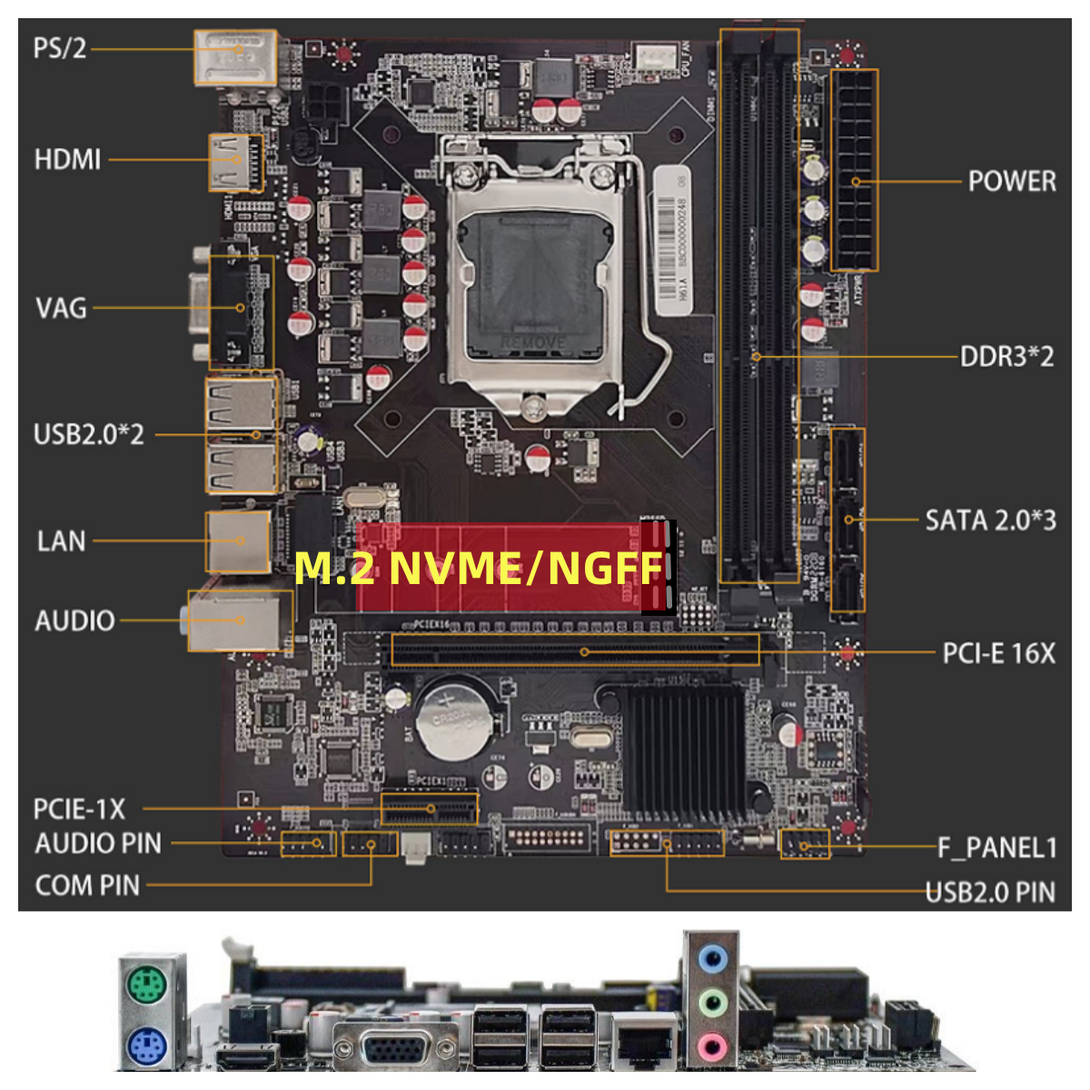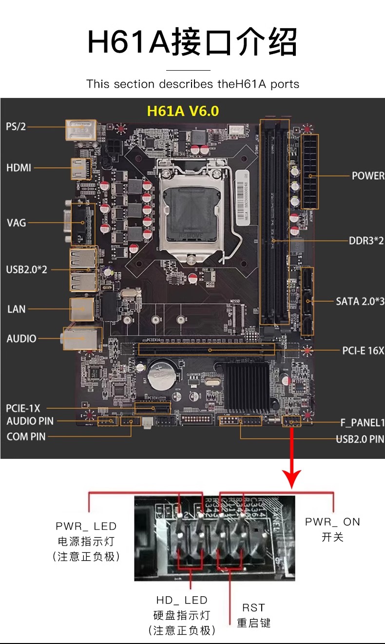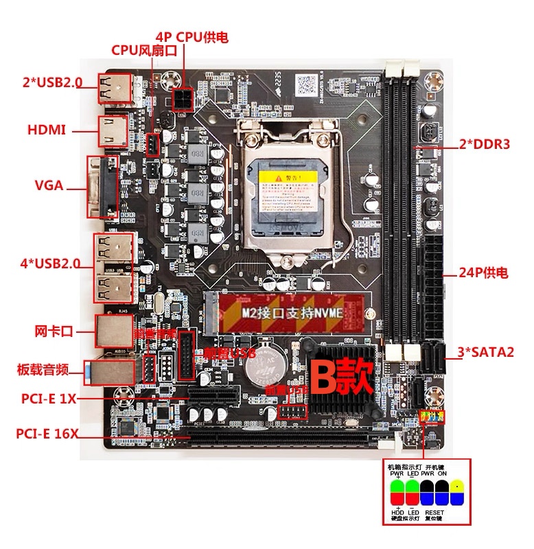 全新H61B H61 1155台式机电脑主板千兆网卡支持2 3代I3 I5 CPU